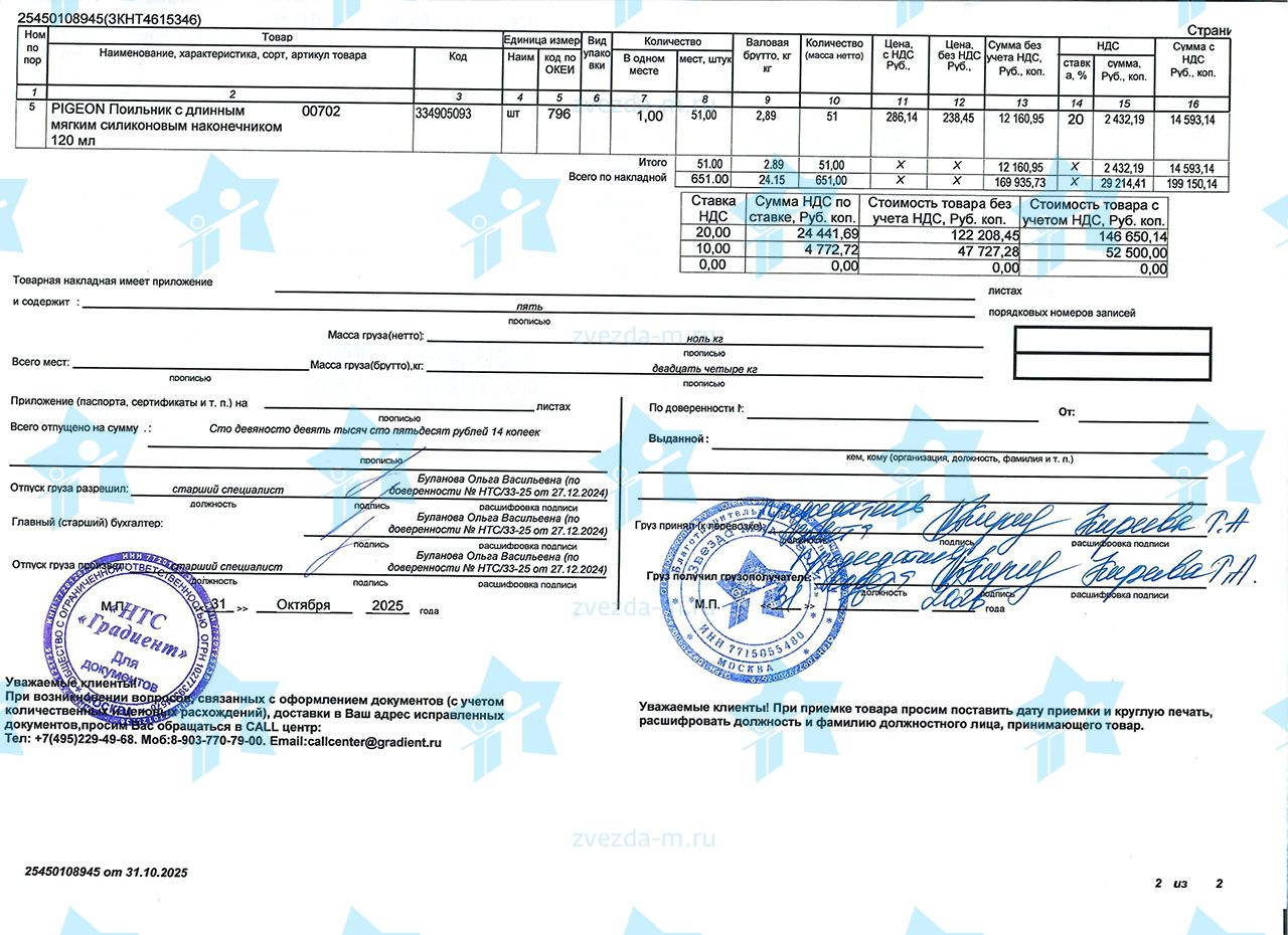 - Поильник Pigeon с длинным мягким силиконовым наконечником 120 мл – 1 шт.