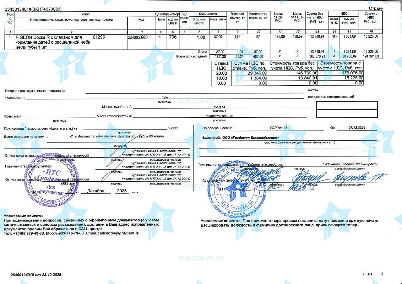 1. Ручной молокоотсос двухфазный Medela – 1 шт.ока Pigeon – 1 упаковка (25шт.).