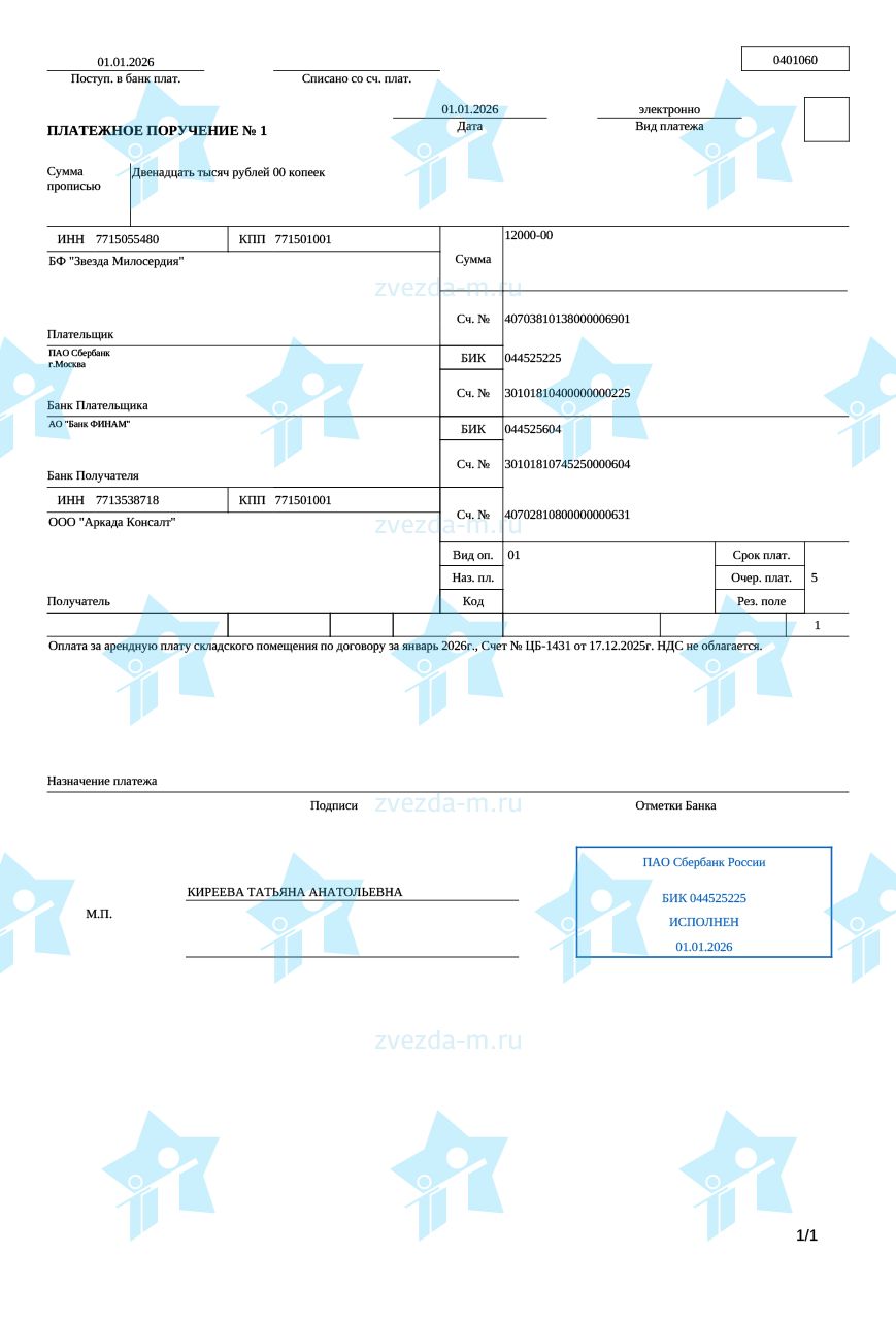 | 21.01.2026 | 7917****775 | г. Москва и Московская область | 312 руб. | SMS-пожертвование |