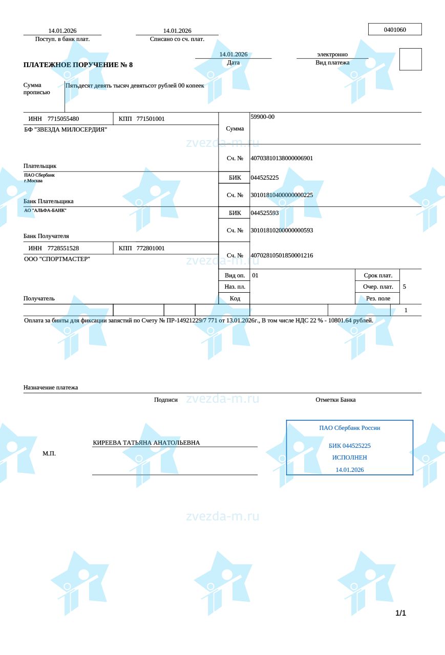 | 18.01.2026 | Анонимно | Москва | 953 руб. | Банковская карта |