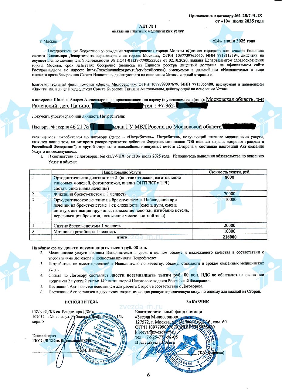 Сейчас Андрей занимается с ортодонтом, выпрямляет зубные ряды. А после Нового года хотят успеть сделать завершающую операцию до 18 лет. Выпрямят челюсть, а потом, как врач нам объясняла, будут делать мягкую ткань. Хорошо, что за операции нам не пришлось платить. Сейчас всю ортодонтическую подготовку к операции оплачивает фонд «Звезда Милосердия».