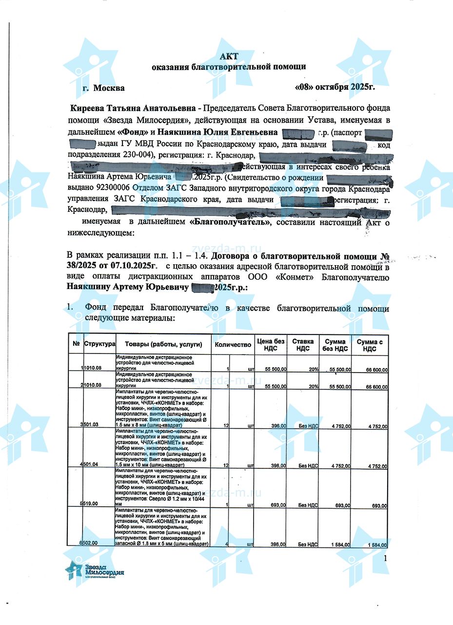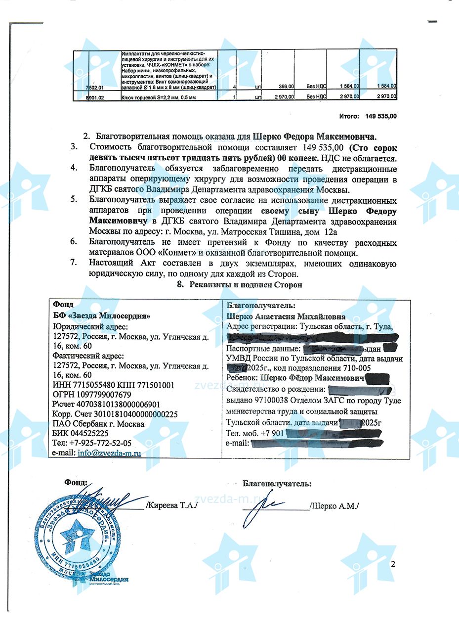 Дистракторы для операции нам предоставил благотворительный фонд «Звезда Милосердия», за что ему огромное спасибо! Сами бы мы точно их не нашли и не купили. Филипп Иванович предупредил, что дистракторы будут российского производства, мы с этим полностью согласились. У нас безоговорочное доверие врачу.
