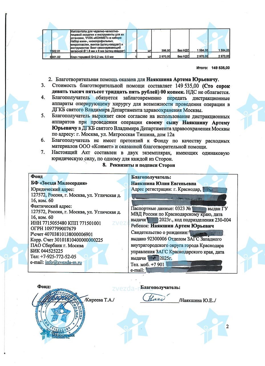 Отдельная благодарность фонду за оплату дистракторов. Без них операция Руслана была бы невозможна. Квота покрывает только госпитализацию и саму операцию, стоимость аппаратов ложится на плечи родителей. Без поддержки фонда нам было бы очень сложно!
