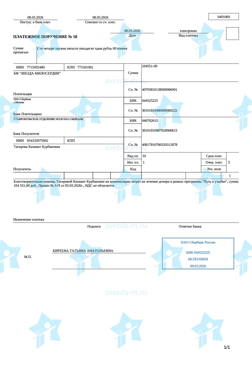 | 05.02.2026 | БФ "Вклад в будущее" | Москва | 2 493 руб. | Банковский перевод |