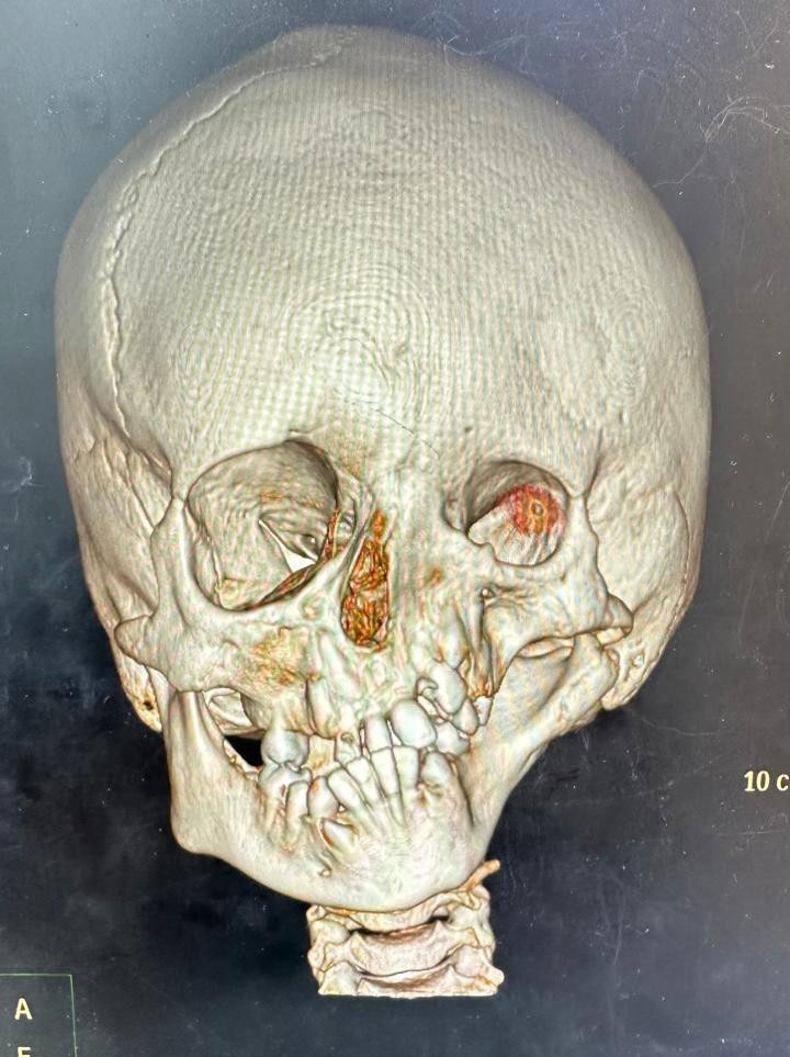Это редкое врожденное заболевание: у Миланы недоразвита левая сторона лица: череп, челюсти, нос, глаз, ухо. Левое глазное яблоко отсутствует, анофтальмия. Левое ухо не слышит, слух возможен только с помощью аппарата. От носа фактически сформирована только правая половина. Челюсть сильно деформирована, зубы растут криво, неправильно смыкаются.