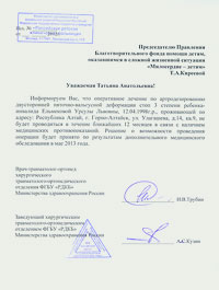 Операция Урсулы будет проведена в рамках совместного инновационного проекта ФГУ «Российская детская клиническая больница» и Благотворительного фонда помощи «Милосердие – детям» по оказанию дорогостоящей высокотехнологичной медицинской помощи детям-инвалидам, проходящим лечение в Российской детской клинической больнице.