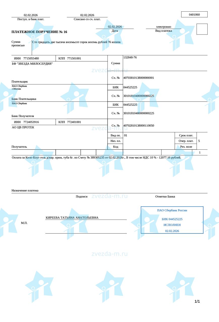 | 01.03.2026 | Клокова Татьяна Алексеевна | Республика Коми, г. Сыктывкар | 150 руб. | Банковский перевод |